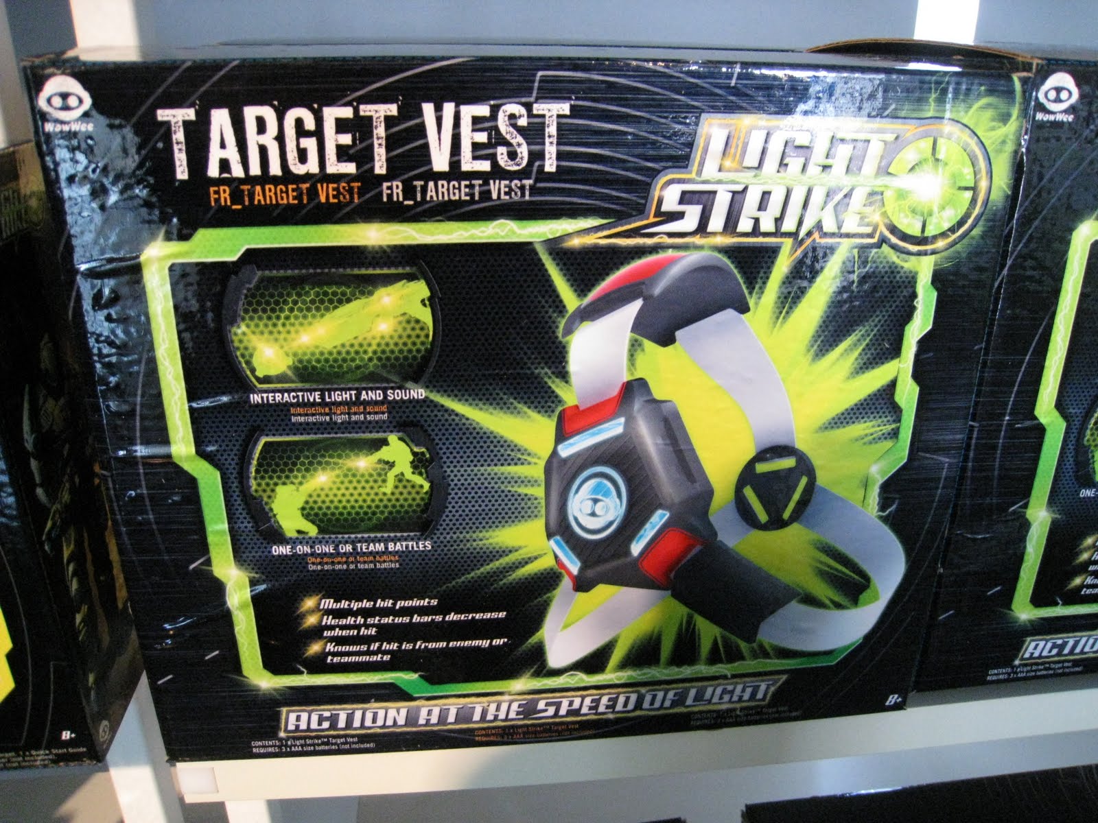 Weaponry. I have learned since becoming the father of a boy that the attraction to guns is something that you cannot fight. This set is great for the kids of the neighborhood to play safely with, only laser targets to alert each other when they have been shot. 3D games come to life with Light Strike!