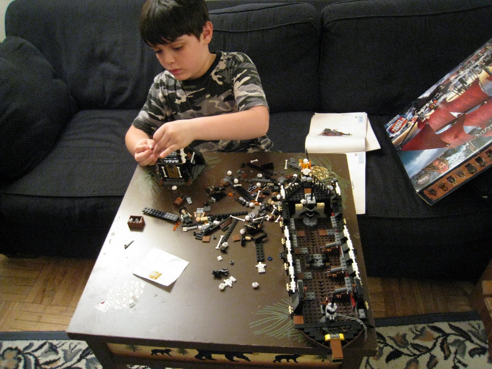 As many Lego sets as we have gone through in this house (dozens!), this one could not be dismantled! I had to clear a shelf of old artwork of my son’s and put this ship on display right above our china cabinet (it does not have any china). We are all very proud of his hard work and beautiful creation. He worked hard with his favorite brand of toy and is reminded of how well he did every time he looks up to the side of the living room.
